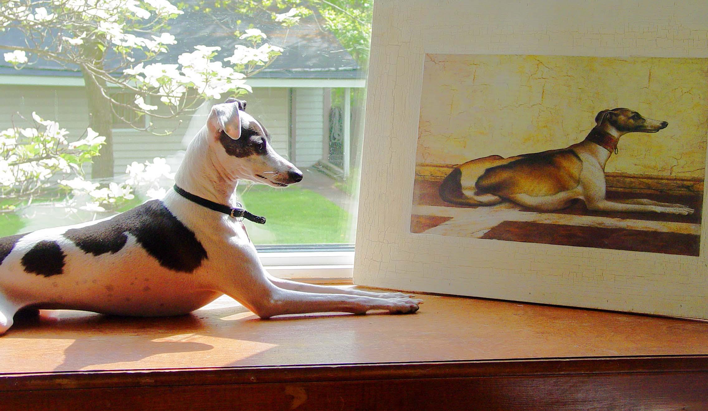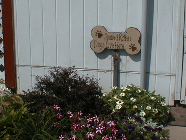 Some close-ups of the interesting dog things we have received as gifts--such as a covered wagon with none other than a "dog" at the reins! A sign that is so true, "Spoiled Rotten Dogs Live Here", and of course, a dog deep into "digging a hole" (a gift from Sandie, our beloved groomer, whom we are sure is looking down on us from heaven!).